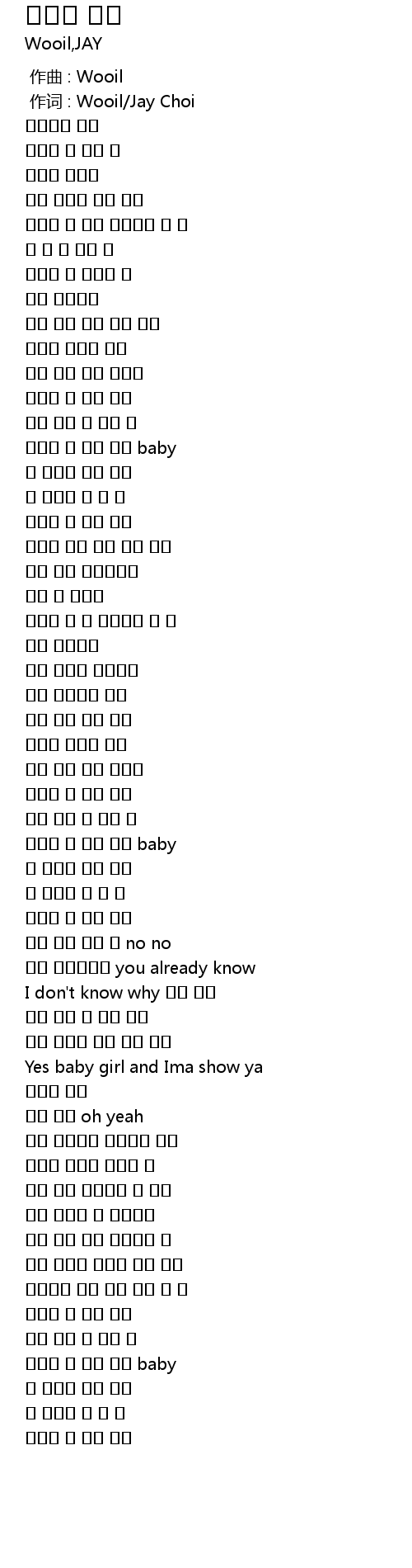 | [00:01.00] | 作词 : Wooil/Jay Choi |