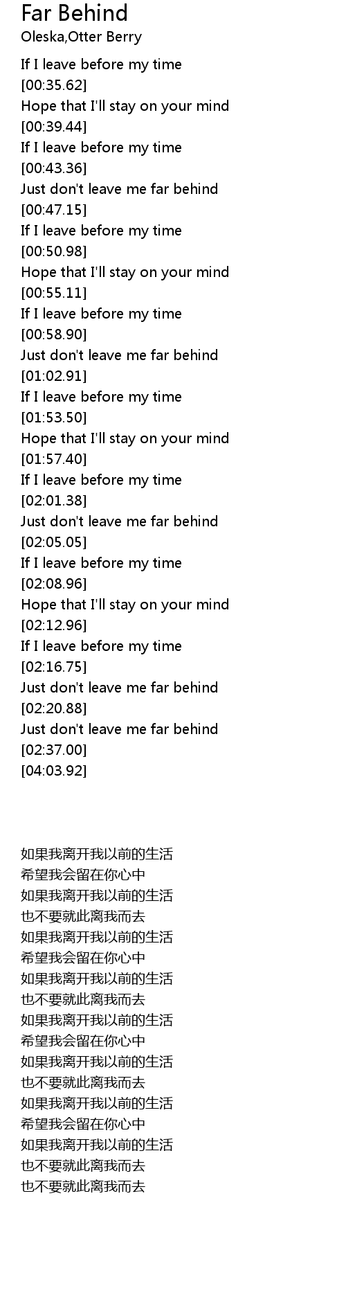 Just don't leave me far behind |