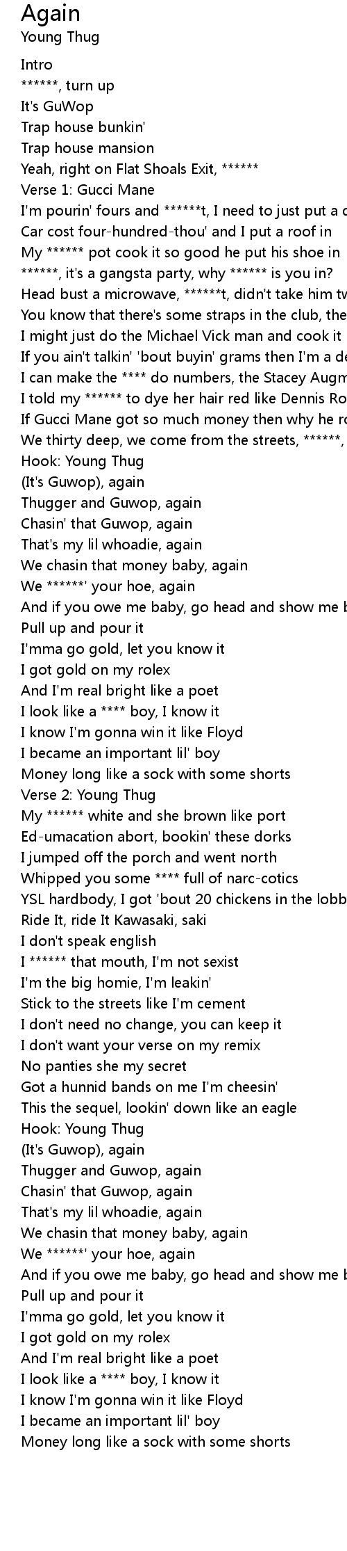 We thirty deep, we come from the streets, ******, we mobbin' |