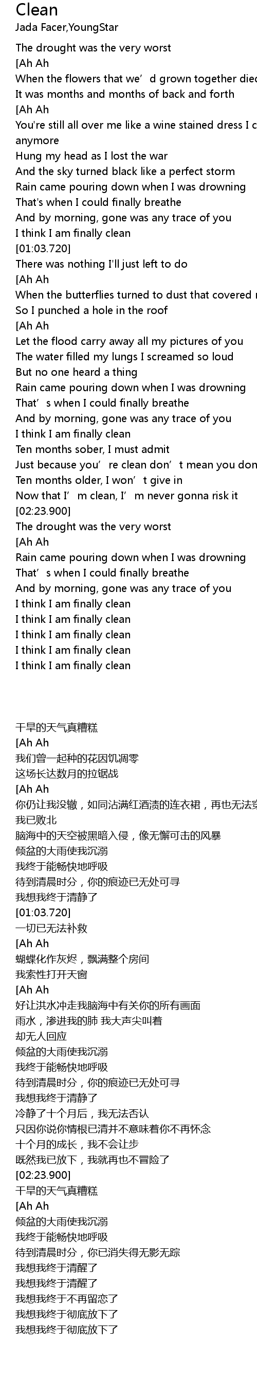| [02:18.070] | Now that I’m clean, I’m never gonna risk it |