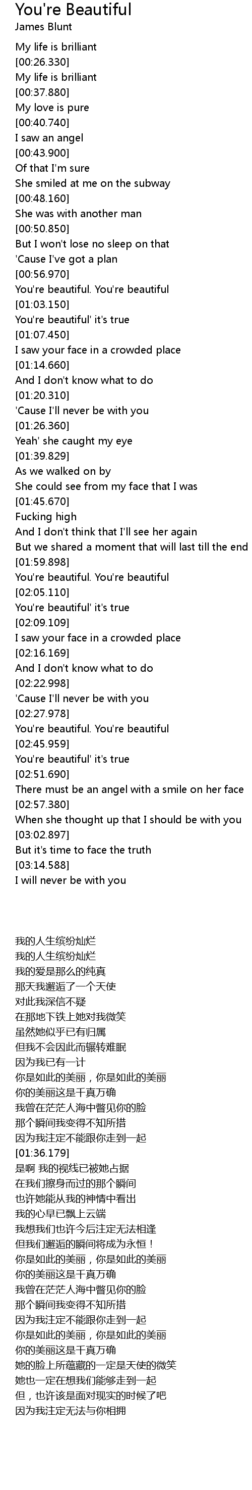 | [02:41.289] | You' re beautiful. You' re beautiful |