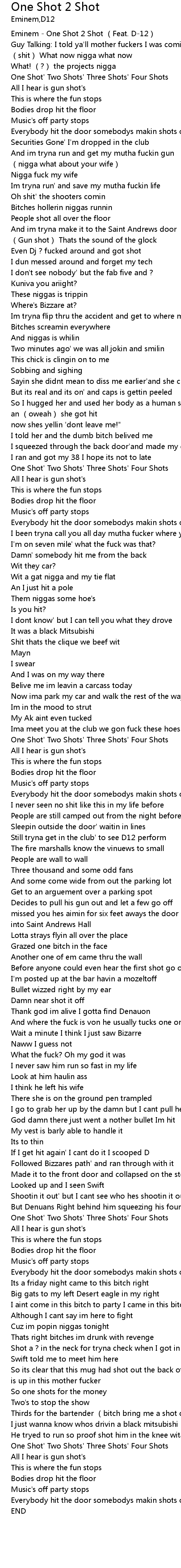 | [00:00.81] | Eminem One Shot 2 Shot Feat. D12 |