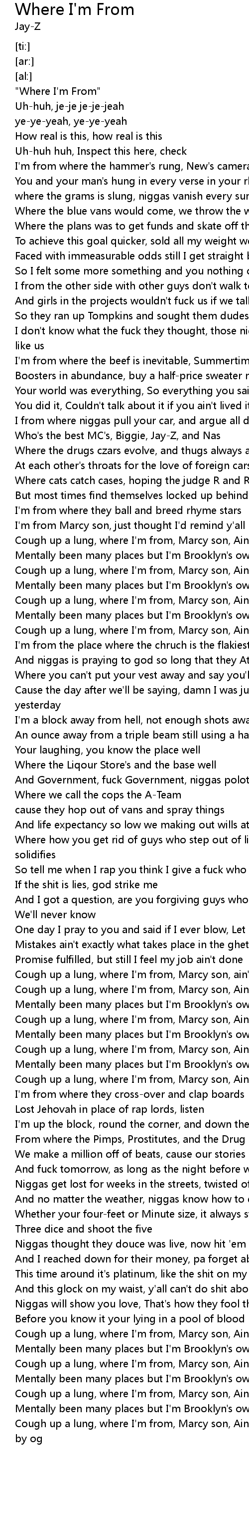 [01:35.05] Cough up a lung, where I'm from, Marcy son, Ain't nothing nice
