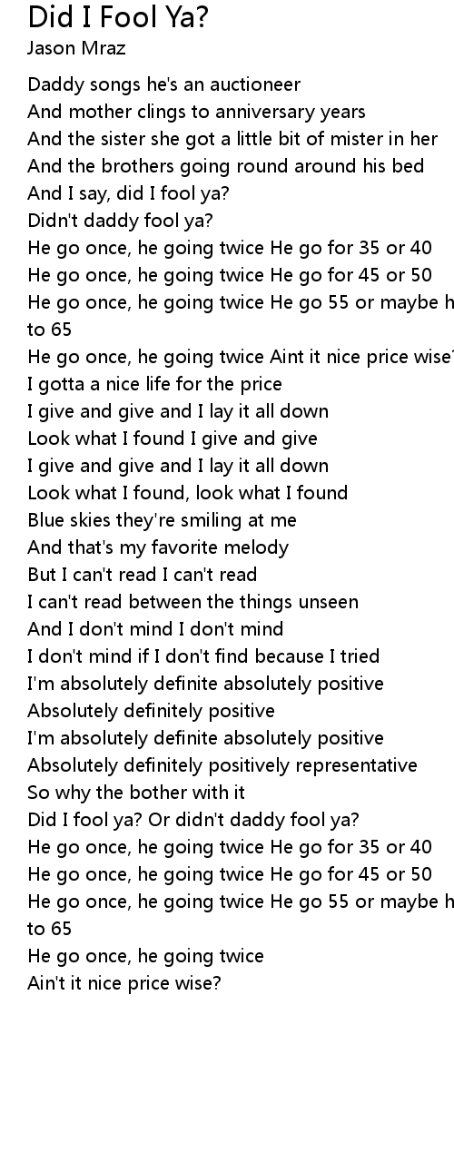 Did I Fool Ya? Lyrics
