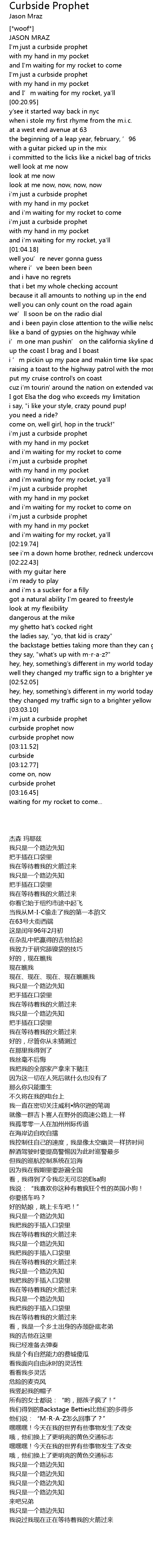 | [01:58.78] | i' m just a curbside prophet |