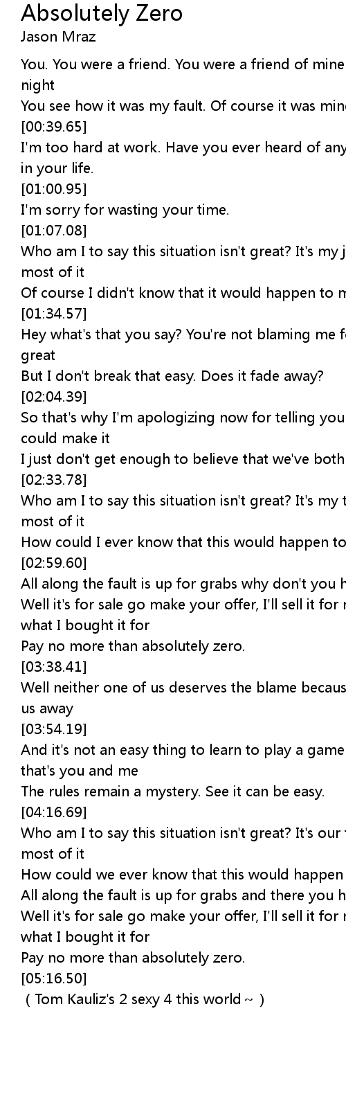 | Song | Absolutely Zero |