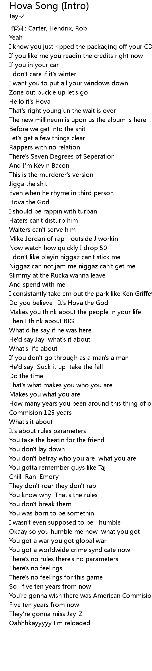 | [00:43.85] | Hova the God |