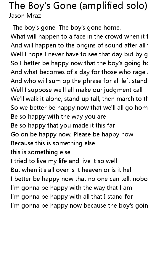 The Boy's Gone (amplified solo) Lyrics