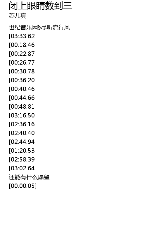 | [03:34.50][03:16.50][02:50.01][02:32.30][01:16.55][00:58.30] | 闭上眼睛数到三 |