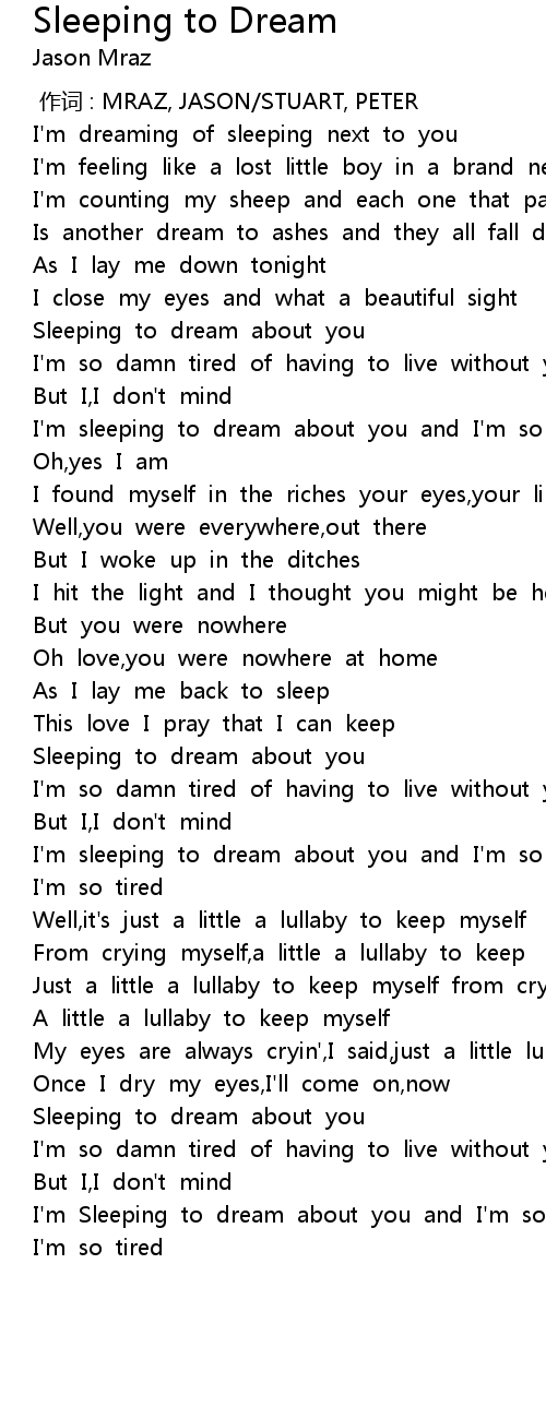 | [02:18.529] | I'm sleeping to dream about you and I'm so tired |