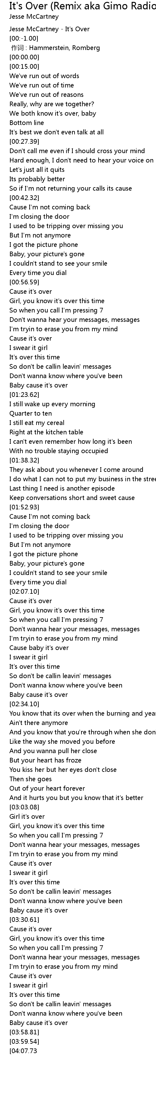 | [00:-2.00] | Jesse McCartney It' s Over |