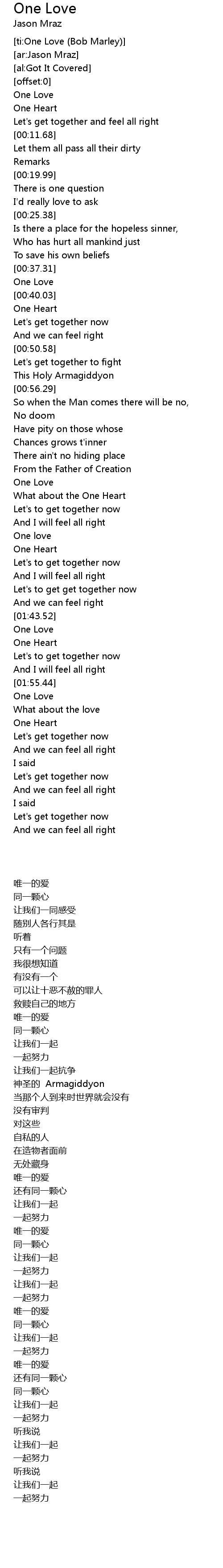 [ti:One Love (Bob Marley)] |