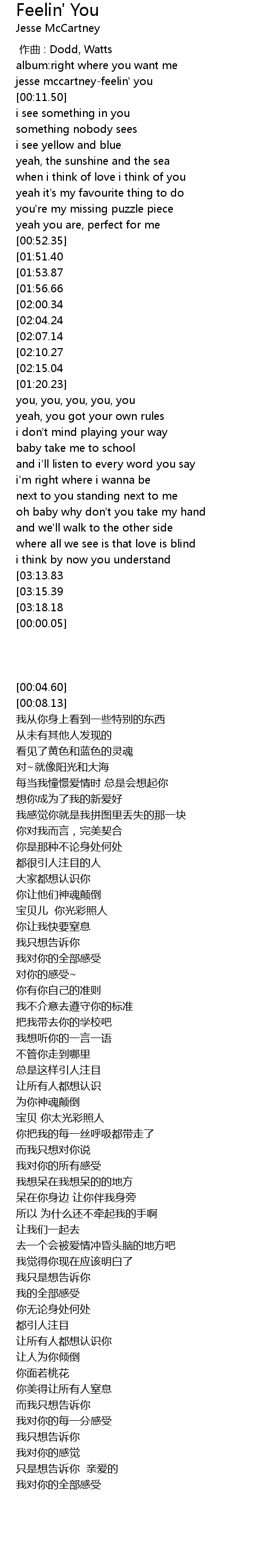 | [00:08.13] | jesse mccartneyfeelin' you |