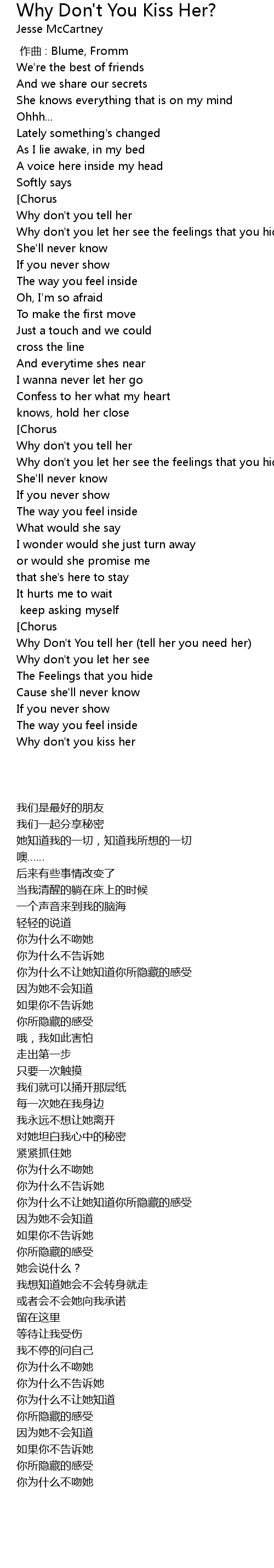 | [00:47.0][Chorus] | Why don't you kiss her |