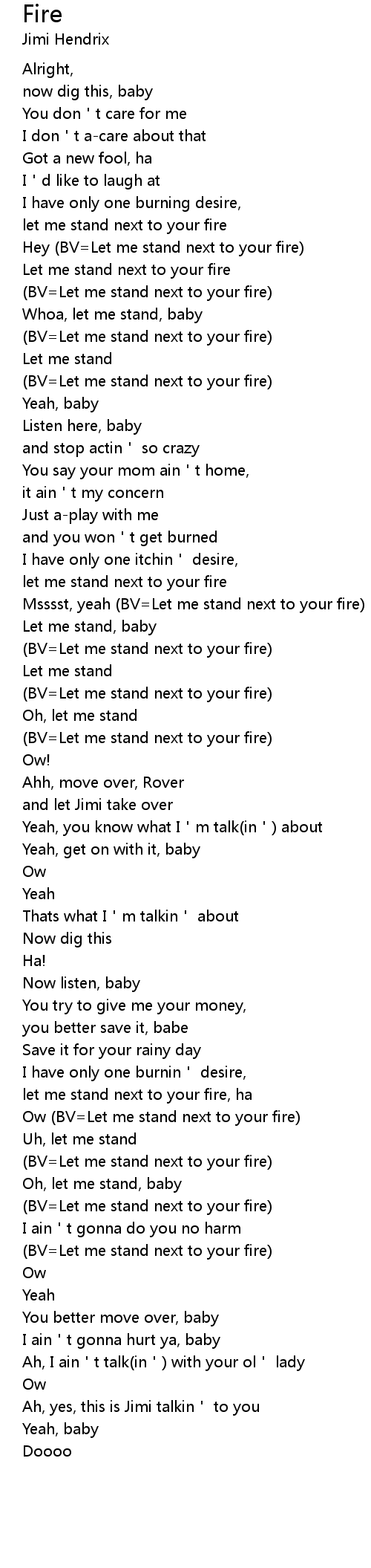 | [00:25] | Hey (BV=Let me stand next to your fire) |