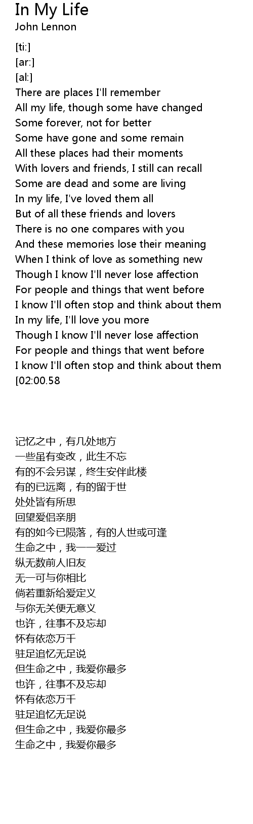 In my life, I'll love you more |