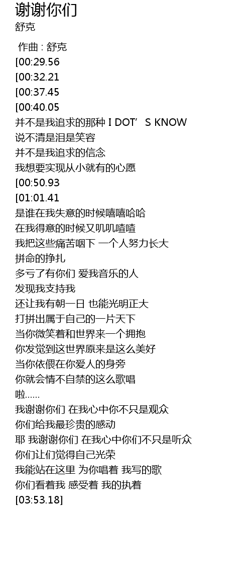 | [03:19.91] | 耶 我谢谢你们 在我心中你们不只是听众 |