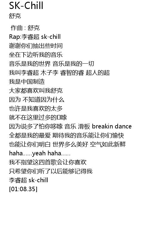 | [00:08.58] | Rap:李睿超 sk-chill |