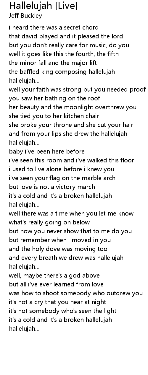 and from your lips she drew the hallelujah |
