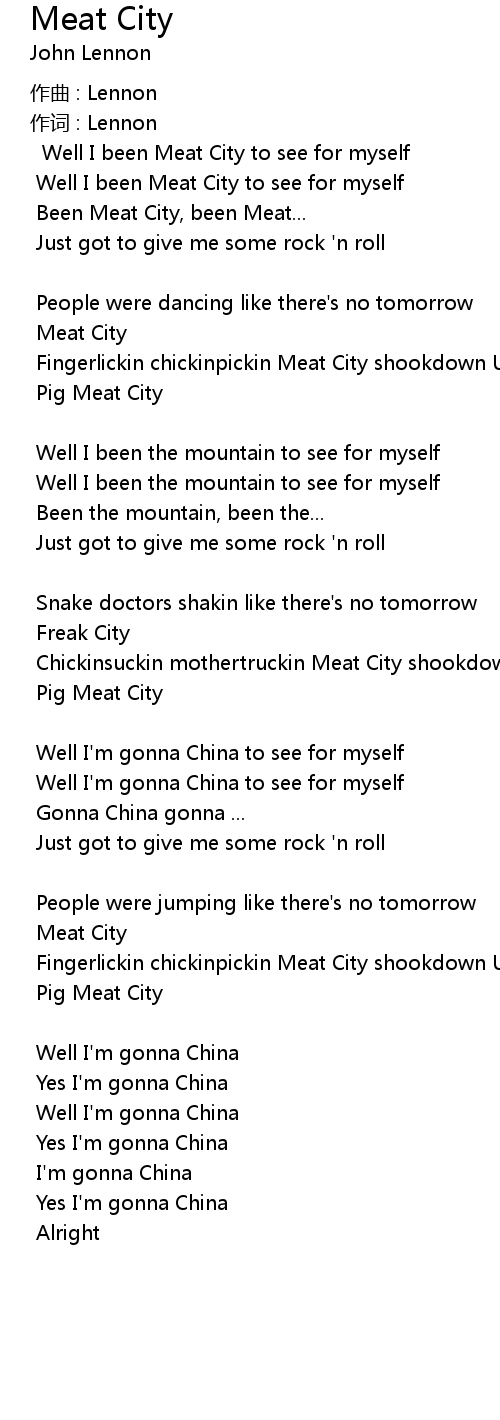 | Well I been Meat City to see for myself | |