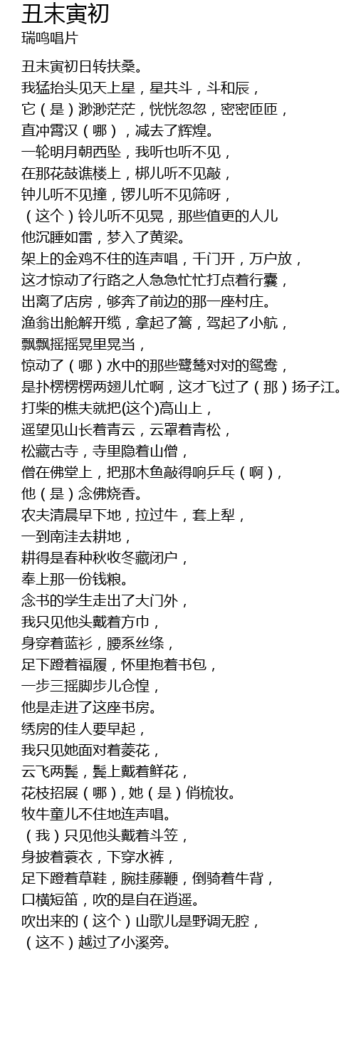 | 是扑楞楞楞两翅儿忙啊,这才飞过了(那)扬子江。 | |