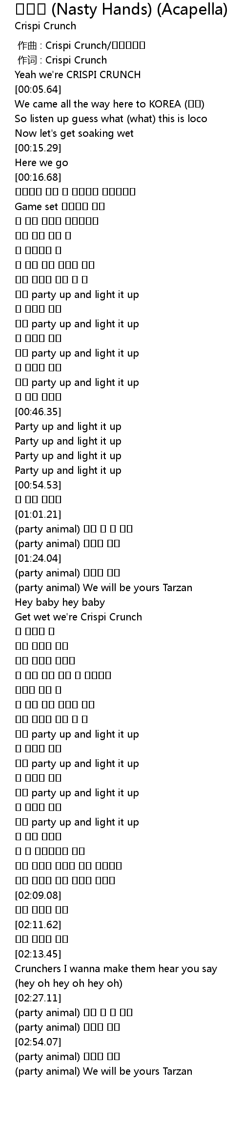 | [02:47.13] | (party animal) 나쁜 손 두 마리 |