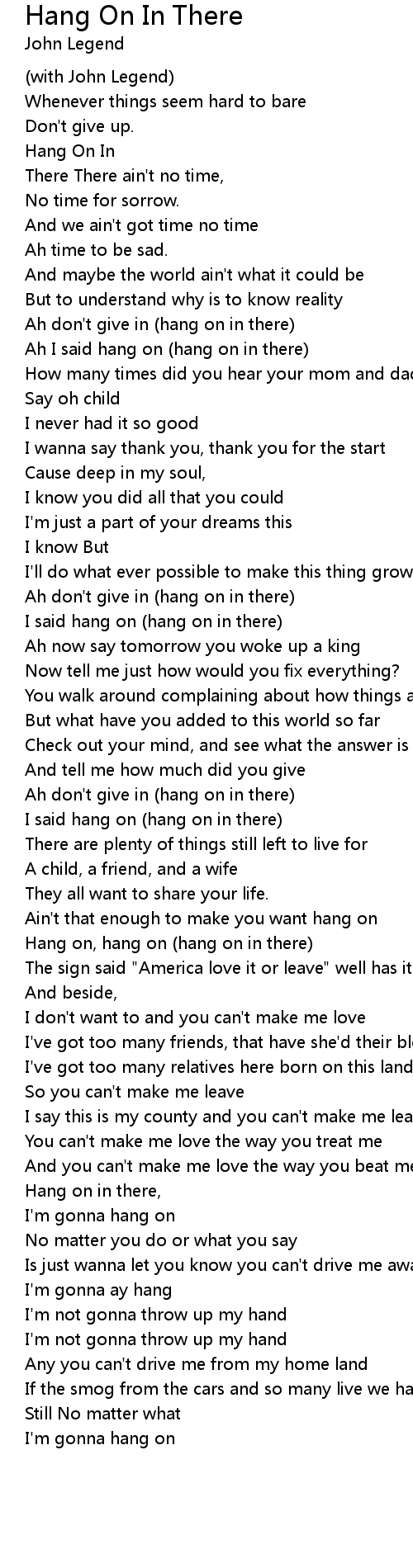Ah I said hang on (hang on in there) |