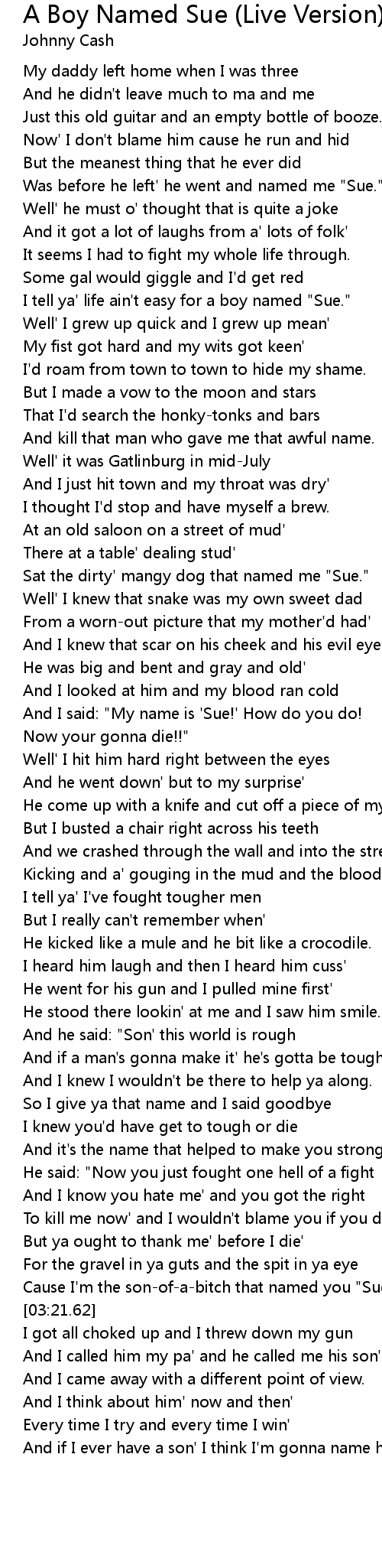 Cause I'm the son-of-a-bitch that named you "Sue.'" |
