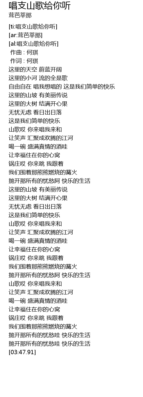 | [02:28.33] | 山歌哎 你来唱我来和 |
