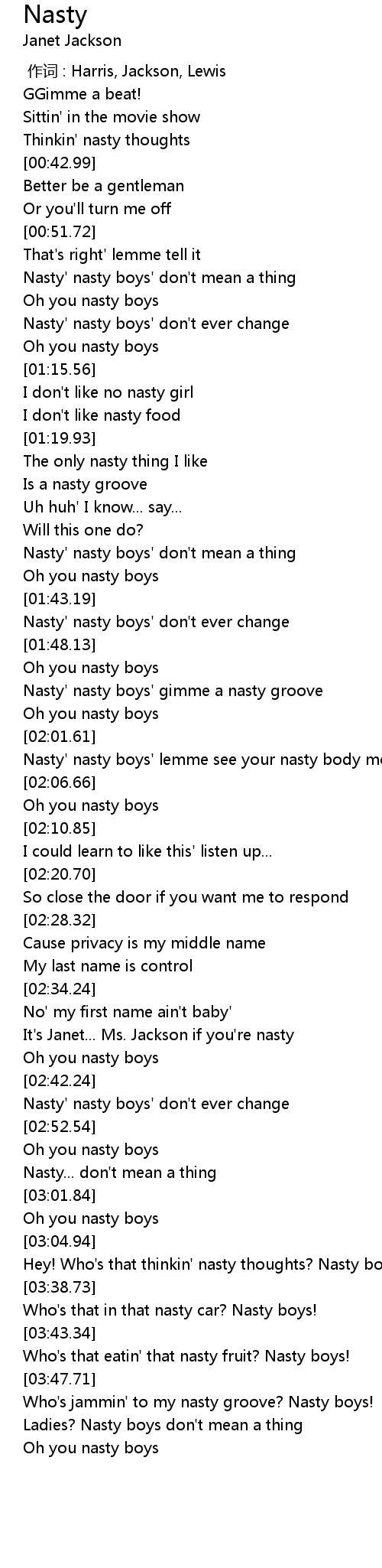 | [02:36.92] | It's Janet... Ms. Jackson if you're nasty |