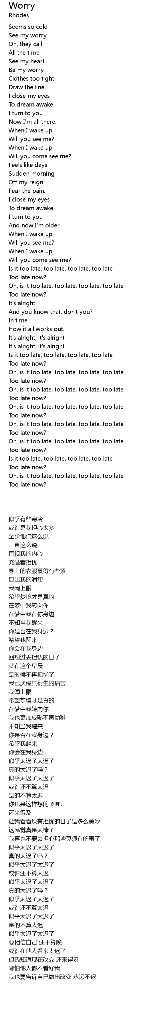 | [03:24.93] | Oh, is it too late, too late, too late, too late |