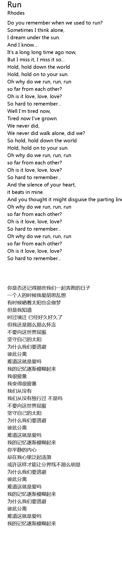 | [01:19.65] | Oh why do we run, run, run |
