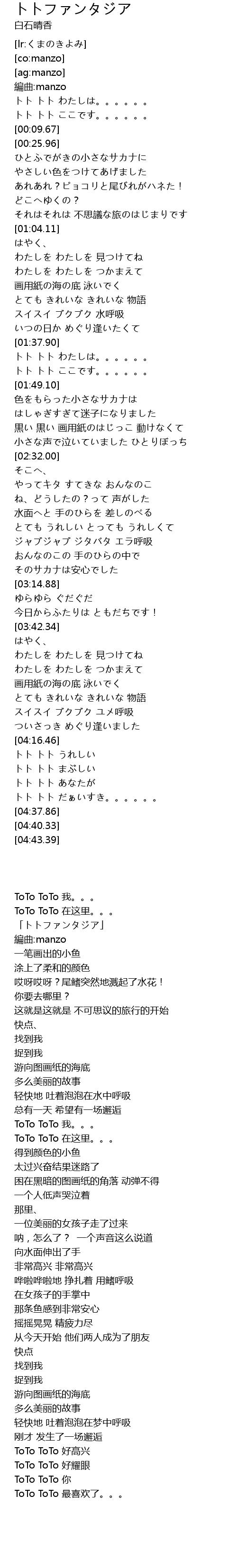 | [04:18.34] | トト トト うれしい |
