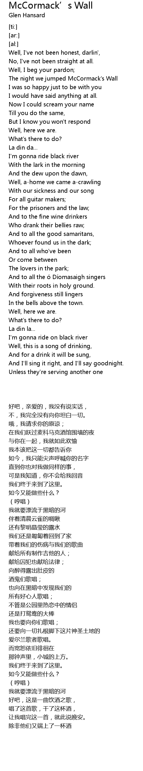 | [00:12.72] | The night we jumped McCormack' s Wall |