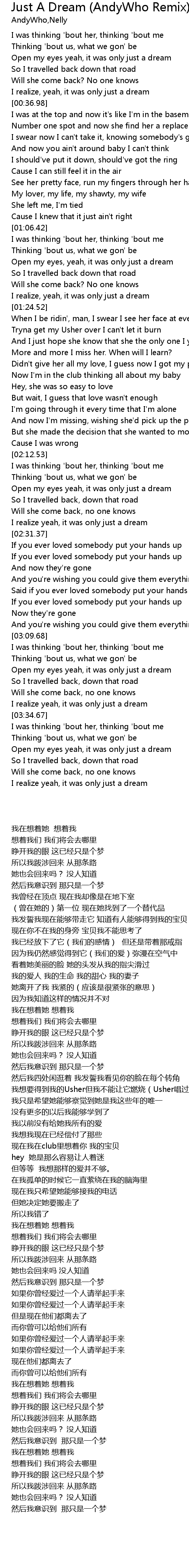 | [03:25.87] | I realize yeah, it was only just a dream |