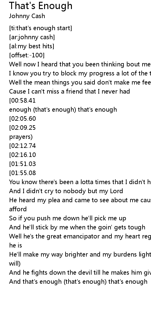 [00:30.45][00:58.41][01:29.56][02:27.54] (I've got) I've got Jesus and that's enough (that's enough) that's enough