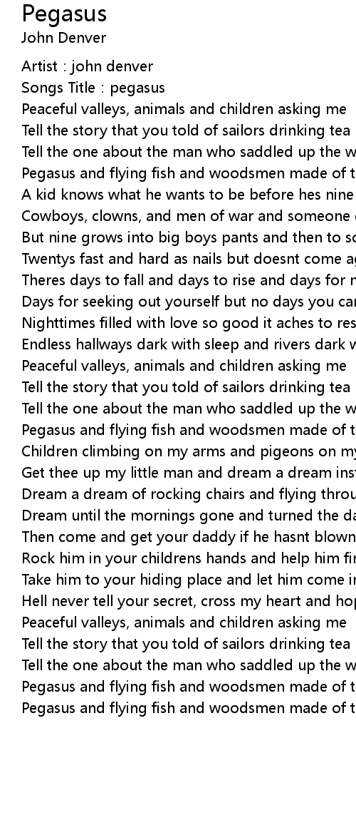 | [00:02.96] | Songs Title: pegasus |