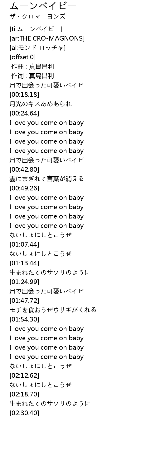| [00:13.40] | 月で出会った可愛いベイビー |