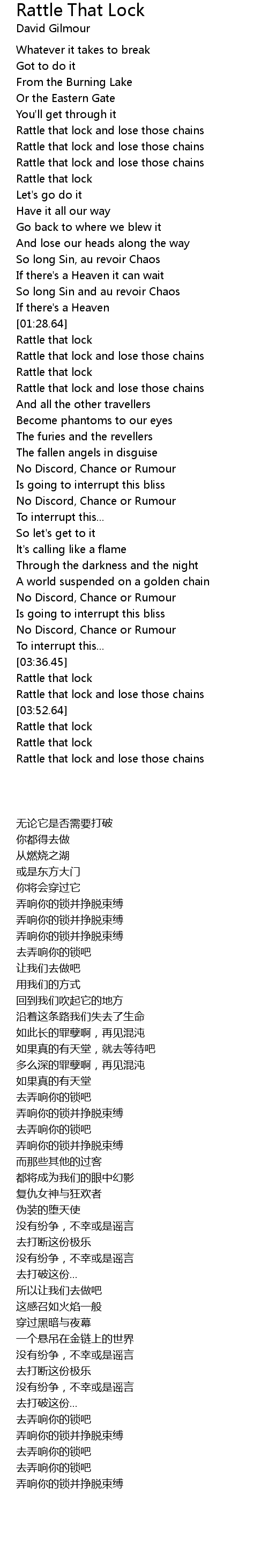 Rattle that lock and lose those chains |