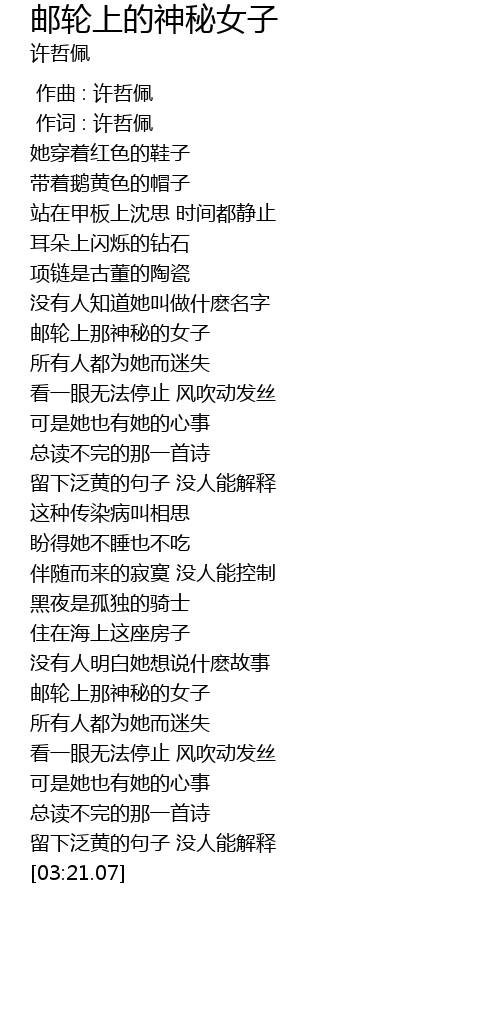 | [00:56.90] | 邮轮上那神秘的女子 |