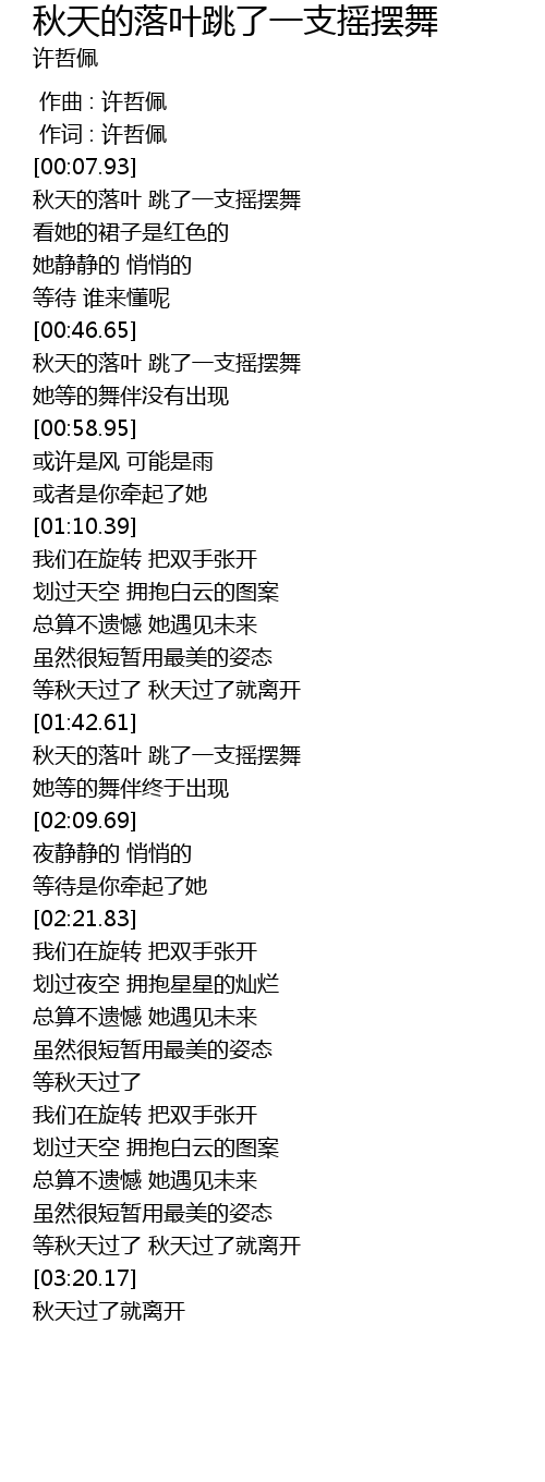 | [01:58.69] | 秋天的落叶 跳了一支摇摆舞 |