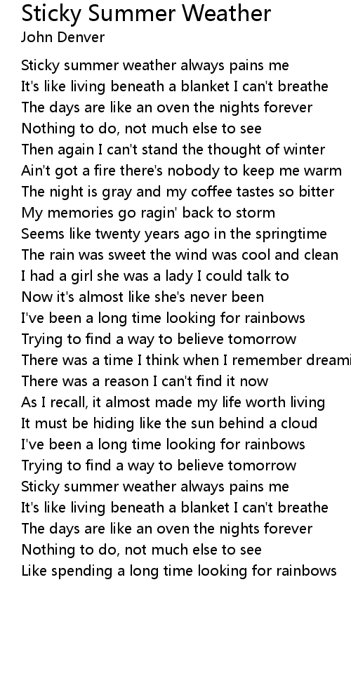 Sticky summer weather always pains me |