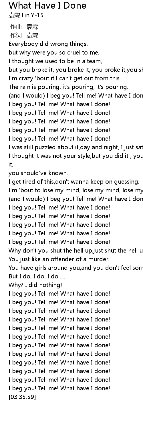 | Song | What Have I Done |