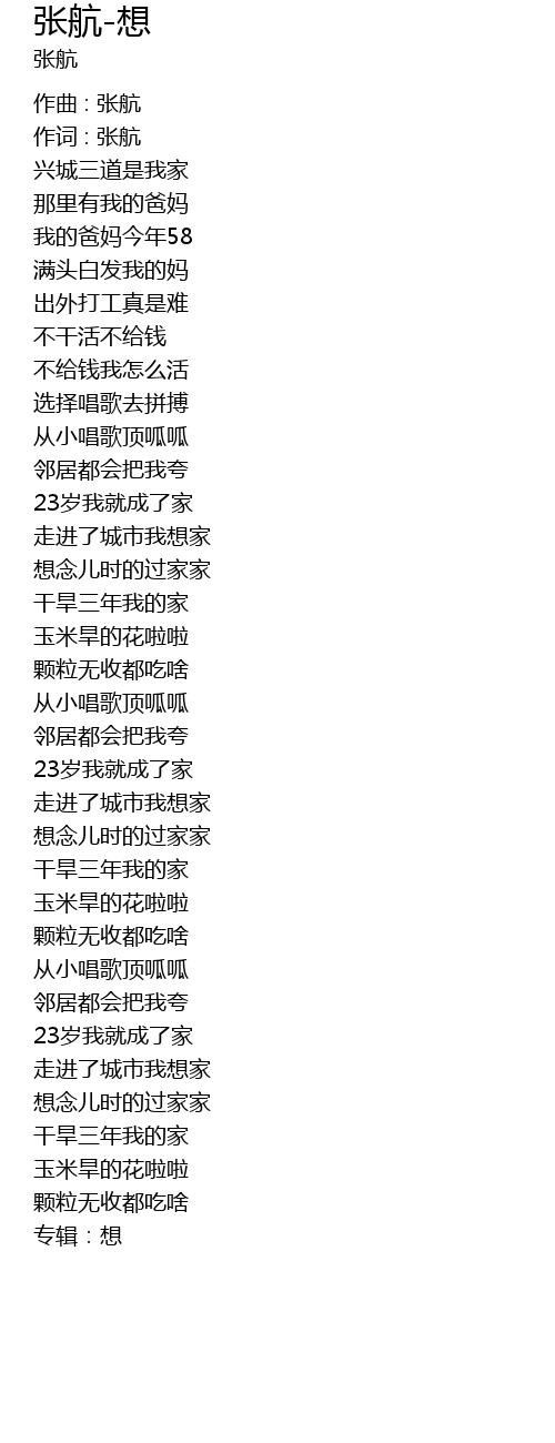 | 作词 : 张航 | |