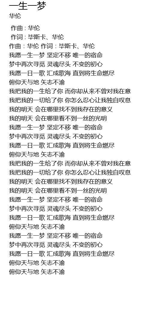 | [03:49.467] | 我愿一日一歌 汇成歌海 直到将生命燃尽 |
