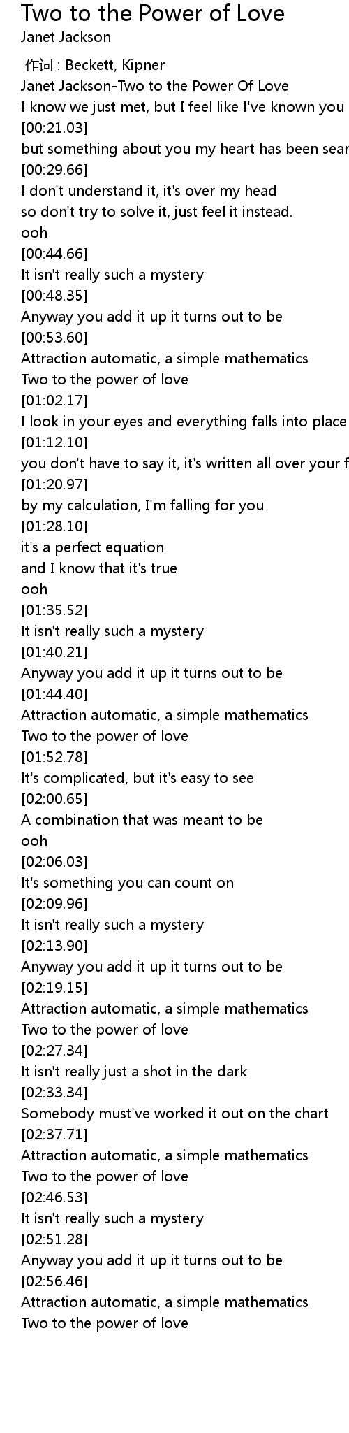 | [00:01.03] | Janet Jackson-Two to the Power Of Love |