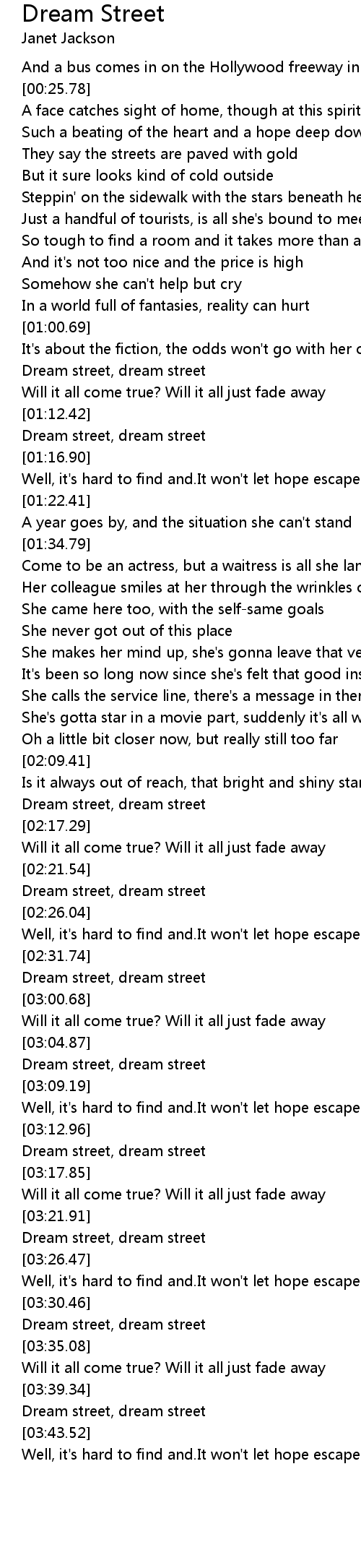 Well, it's hard to find and.It won't let hope escape from dream street |