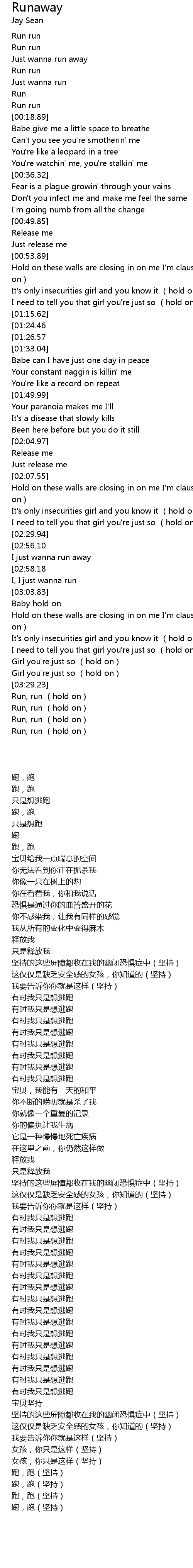 | [03:00.46][02:56.10][02:51.77][02:47.34][02:42.93][02:38.56][02:34.28][02:30.14] | Sometimes I just wanna run away |