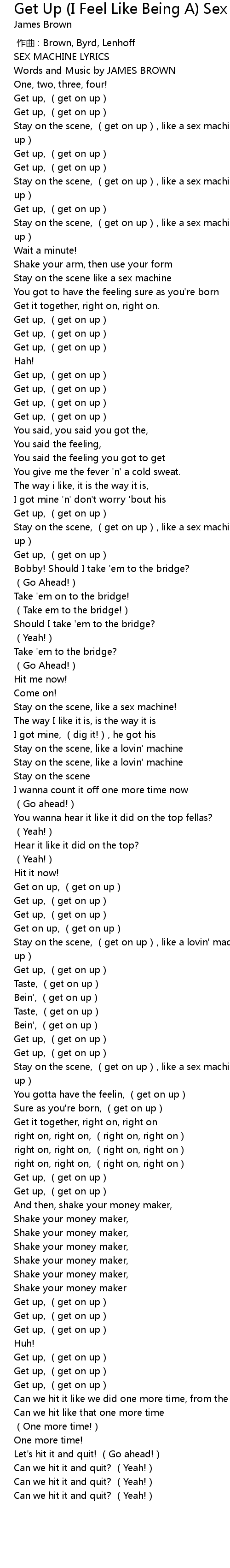 | [02:16.22] | Stay on the scene, like a sex machine! |