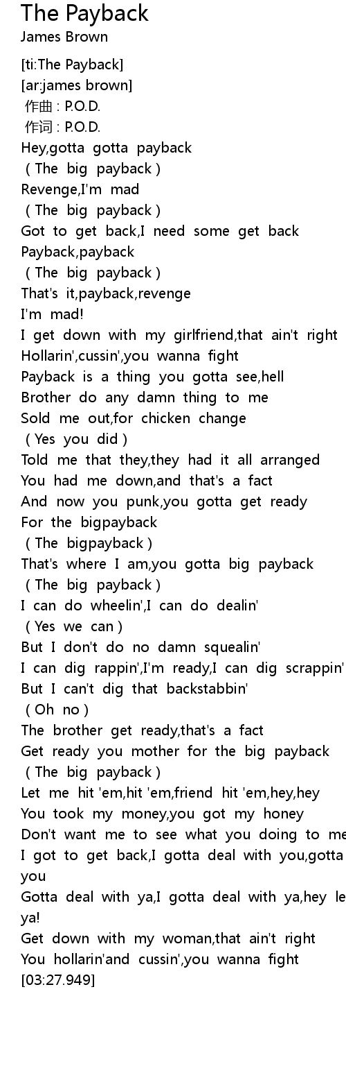 | [01:00.956] | Payback is a thing you gotta see,hell |